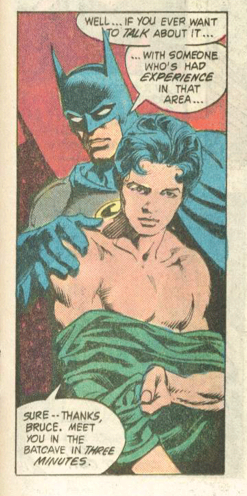 Antes, en 1954 un conocido psiquiatra Fredric Wertham, en su libro Seduction of the Innocent, sostenía que las historias de Batman y Robin eran psicológicamente homosexuales, La editora tuvo que salir al paso realizando un comunicado señalando que Bruce Wayne y Dick Grayson (Robin) no eran homosexuales. Batwoman fue en cambio una compañera de Batman, pero en el 2006 reaparece como una mujer que ha sido dada de baja del ejército por su condición de lesbiana.